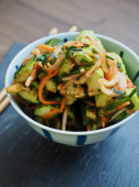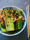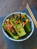 Koreański żywności faffedcucumberpickles, ogórki, Oi-so-bagi