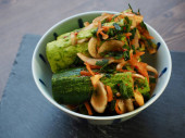 Koreański żywności faffedcucumberpickles, ogórki, Oi-so-bagi