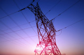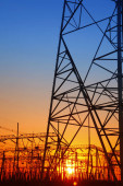 Sylwetka wieczór pylon transmisji energii elektrycznej