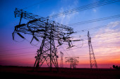 Sylwetka wieczór pylon transmisji energii elektrycznej