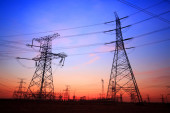 Sylwetka wieczór pylon transmisji energii elektrycznej