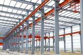 Stalowa konstrukcja ramy znajduje się na placu budowy