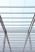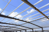 Stalowa konstrukcja ramy znajduje się na placu budowy