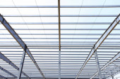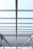 Stalowa konstrukcja ramy znajduje się na placu budowy