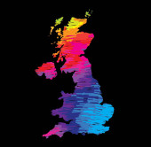 Wielka Brytania mapa stylu przypominającym akwarele splash