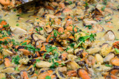 Ryż cytrynowy z małżami, midopilafo z bliska, makro - greckie danie