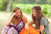 dwie dziewczyny w parku, patrząc na zdjęcia w aparacie