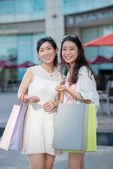 vrouwen op zoek naar boodschappentaskobiet patrząc na torbę na zakupy
