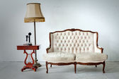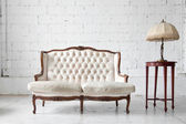 starożytne skórzaną sofą i telefon w białym pokoju