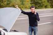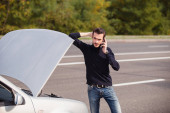 Zdjęcie "Młoda kobieta wzywa służbę ewakuacyjną. Jej samochód się zepsuł." może być wykorzystywane do celów osobistych i komercyjnych zgodnie z warunkami zakupionej licencji Royalty-free. Obraz jest dostępny do pobrania w jakości wysokiej rozdzielczości do 5760x3840.