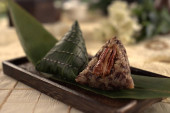 tempe mentah: surowy tempeh (niegotowane ciasto sojowe) na liściu banana .