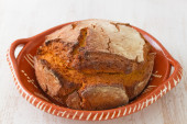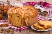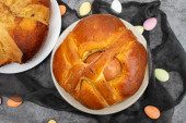 typowy portugalski tort wielkanocny Folar na drewnianej desce