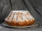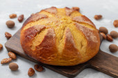 typowy portugalski tort wielkanocny Folar na drewnianej desce