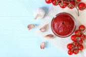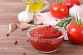 Zdjęcie "Pasta pomidorowa ze świeżych pomidorów na stole." może być wykorzystywane do celów osobistych i komercyjnych zgodnie z warunkami zakupionej licencji Royalty-free. Obraz jest dostępny do pobrania w jakości wysokiej rozdzielczości do 5760x3840.