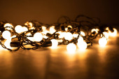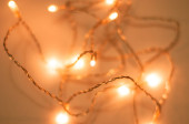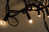 Biała elektryczna girlanda. Światła. Piękne tło z girlandą LED w nocy