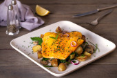 Zdjęcie "Pieczona wieprzowina z warzywami na czarnym talerzu. Obraz pionowy nad głową" może być wykorzystywane do celów osobistych i komercyjnych zgodnie z warunkami zakupionej licencji Royalty-free. Obraz jest dostępny do pobrania w jakości wysokiej rozdzielczości do 5760x3840.