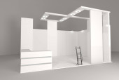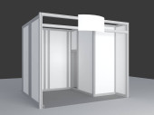 Kabina targowa. Ilustracja 3d izolowana na białym tle.