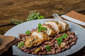 Wieprzowina z ciecierzycą i szpinakiem. Przestrzeń kopiowania.