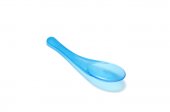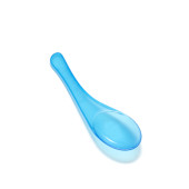 Niebieska plastikowa łyżka na prostym białym tle studia