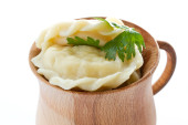 słodkie wermicelli gotowane z mlekiem w ceramicznej misce na drewnianym stole