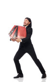 Zdjęcie "Zabawny człowiek z mnóstwem papierów na białym." może być wykorzystywane do celów osobistych i komercyjnych zgodnie z warunkami zakupionej licencji Royalty-free. Obraz jest dostępny do pobrania w jakości wysokiej rozdzielczości do 5760x3840.