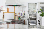 Jasne wnętrze kuchni z drewnianymi detalami i dużymi oknami