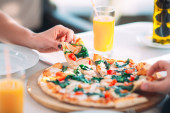 Zdjęcie "Mama i dziewczyna 6 lat je pizzę w kawiarni" może być wykorzystywane do celów osobistych i komercyjnych zgodnie z warunkami zakupionej licencji Royalty-free. Obraz jest dostępny do pobrania w jakości wysokiej rozdzielczości do 5760x3840.