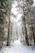 Zeszłej zimy z pięknym śniegiem na drzewach. Zdjęcie zrobione w Europie, Łotwa.