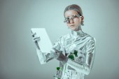Zdjęcie "Poważny przystojny młody mężczyzna w inteligentnych goglach pracuje z ultranowoczesnym, przezroczystym urządzeniem w biurze" może być wykorzystywane do celów osobistych i komercyjnych zgodnie z warunkami zakupionej licencji Royalty-free. Obraz jest dostępny do pobrania w jakości wysokiej rozdzielczości do 5760x3840.