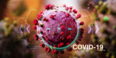 selektywna ostrość białej myszy w szklanym pudełku przy ampułkach, strzykawce i szalce Petriego, ilustracja COVID-19