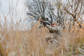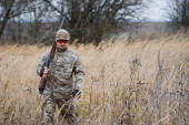 Zdjęcie "Łowca w mundurze ze strzelbą myśliwską. Koncepcja łowiecka" może być wykorzystywane do celów osobistych i komercyjnych zgodnie z warunkami zakupionej licencji Royalty-free. Obraz jest dostępny do pobrania w jakości wysokiej rozdzielczości do 5760x3840.
