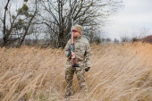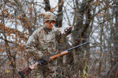 Zdjęcie "Łowca w mundurze ze strzelbą myśliwską. Koncepcja łowiecka" może być wykorzystywane do celów osobistych i komercyjnych zgodnie z warunkami zakupionej licencji Royalty-free. Obraz jest dostępny do pobrania w jakości wysokiej rozdzielczości do 5760x3840.