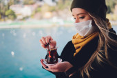 Zdjęcie "epidemia wirusa - młoda piękna, smutna i zaniepokojona kobieta nosząca medyczną maskę na twarzy podczas kwarantanny i zamykana w domu w panice jako profilaktyka vs zakażenie koronawirusem." może być wykorzystywane do celów osobistych i komercyjnych zgodnie z warunkami zakupionej licencji Royalty-free. Obraz jest dostępny do pobrania w jakości wysokiej rozdzielczości do 5760x3840.
