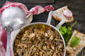 zdrowej żywności na bazie roślinnych receptur koncepcja, wegańskie jackfruit białej fasoli i przyśpieszenia gulasz