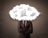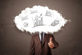 Elegancki biznes człowiek chmura głowa z ręcznie rysowane wykresy