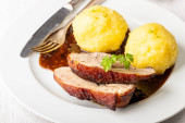 Zdjęcie "pieczona wieprzowina bawarska z pierogami" może być wykorzystywane do celów osobistych i komercyjnych zgodnie z warunkami zakupionej licencji Royalty-free. Obraz jest dostępny do pobrania w jakości wysokiej rozdzielczości do 5760x3840.
