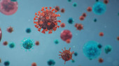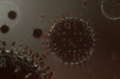 Ilustracja 3D wybuchu epidemii koronawirusu koncepcji pod mikroskopem. Rozprzestrzenianie się wirusa w człowieku. Epidemia, pandemia układu oddechowego. Śmiertelne zakażenie wirusowe.