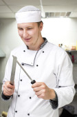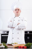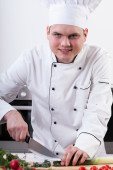 Guy gotować przygotowując przysmaki w kuchni restauracji.