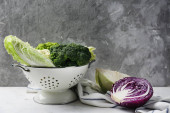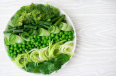 widok z góry świeże zielone jabłko i brokuły na białej drewnianej powierzchni