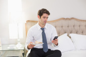 Zdjęcie "dobrze ubrany mężczyzna tekst wiadomości w łóżku" może być wykorzystywane do celów osobistych i komercyjnych zgodnie z warunkami zakupionej licencji Royalty-free. Obraz jest dostępny do pobrania w jakości wysokiej rozdzielczości do 5760x3840.
