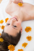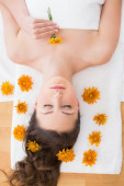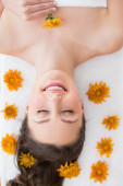 piękną kobietę z kwiatami w gabinecie kosmetycznym