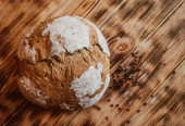 Zdjęcie "Chleb z ziarna Artisan. Rustykalny bochenek domowego chleba, syn ciemnego drewnianego stołu. Domowej roboty bochenek chleba z przyprawami. Widok z góry. Odpowiednie miejsce do badania" może być wykorzystywane do celów osobistych i komercyjnych zgodnie z warunkami zakupionej licencji Royalty-free. Obraz jest dostępny do pobrania w jakości wysokiej rozdzielczości do 5760x3840.