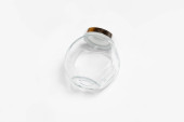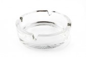 Okrągła szklana popielniczka izolowana na białym tle. Fotografia wysokiej rozdzielczości.Widok z góry.