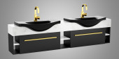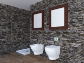 nowoczesne toalety z czarny kamienny mur i bieli sprzętu