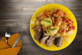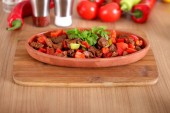 idealny turecki jedzenie las paszteciki na drewnianym stole z pikantnym białym talerzu