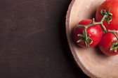 Dojrzałe pomidory na desce do krojenia, widok z góry, przestrzeń do kopiowania