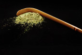 Zdjęcie "Łyżka do herbaty matcha i zielonego poudera w specjalnej ceramicznej kiełbasie. Czarne tło. Zdjęcie wykonane w płaskim stylu świeckim. Skupiamy się na matcha pouder." może być wykorzystywane do celów osobistych i komercyjnych zgodnie z warunkami zakupionej licencji Royalty-free. Obraz jest dostępny do pobrania w jakości wysokiej rozdzielczości do 5760x3840.