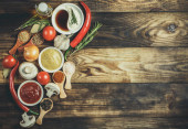 Zdjęcie "Grillowane mięso, krojony stek z wołowiny z przyprawami, frytki i warzywa na rustykalnym tle" może być wykorzystywane do celów osobistych i komercyjnych zgodnie z warunkami zakupionej licencji Royalty-free. Obraz jest dostępny do pobrania w jakości wysokiej rozdzielczości do 5760x3840.