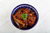 bardzo smaczny gulasz z mięsem, pomidorami bakłażan