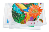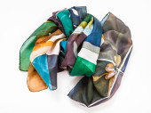 owinięty jedwabny szalik z kwiatową ozdobą ręcznie rysowany w zimnym konturze batik technika izolowana na białym tle